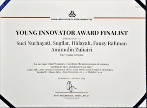 Finalist Young Innovator Award 37th Asian Association of Open Universities Conference (AAOU 2024) in Allama Iqbal Open University Pakistan